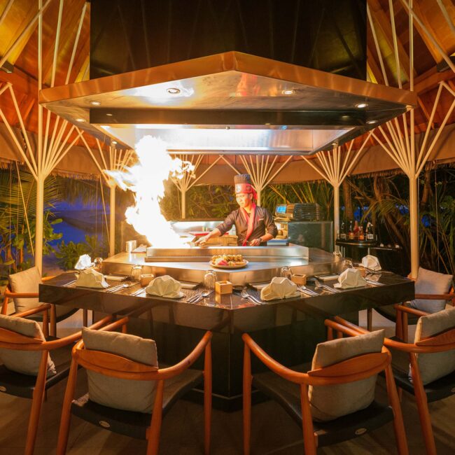 På trods af øens størrelse på kun 150 x 200 meter forkæles gæster med hele fem restauranter. Fælles for dem er deres hyggelige atmosfære samt fantastiske mad, som virkelig overgår forventningerne.