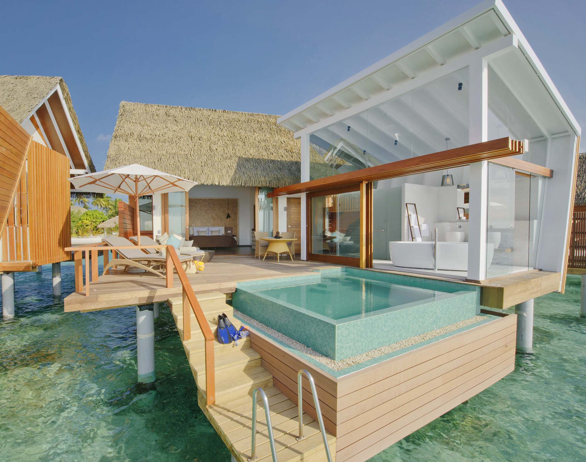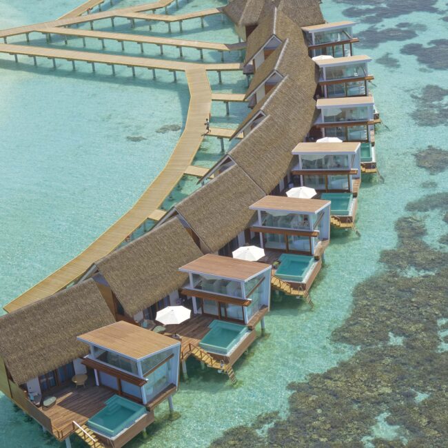 På dette 5-stjernede ø-resort findes en unik all-inclusive oplevelse, som både tilbyder en overvældende minibar samt et eksklusivt vinkøleskab med hele 30 forskellige flasker vin.