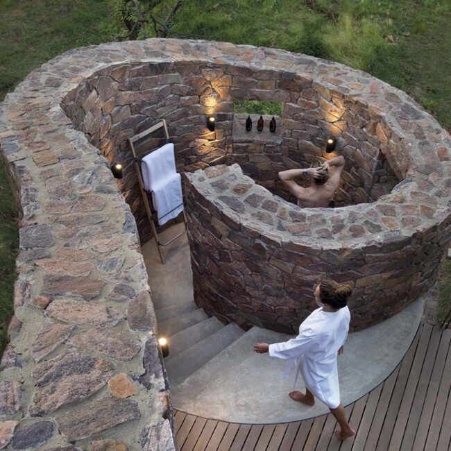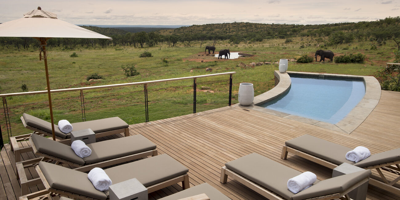 Ekstra detalje - safarien stopper ikke, bare fordi du er tilbage i lodgen. De fleste hytter har privat udsigtspool, hvorfra du kan betragte de dyr, der besøger vandhullet foran lodgen. Er du heldig, kommer næsehorn eller elefanter helt tæt på. Vi oplevede selv mange impalaer og vortesvin græsse lige foran vores hævede terrasse."