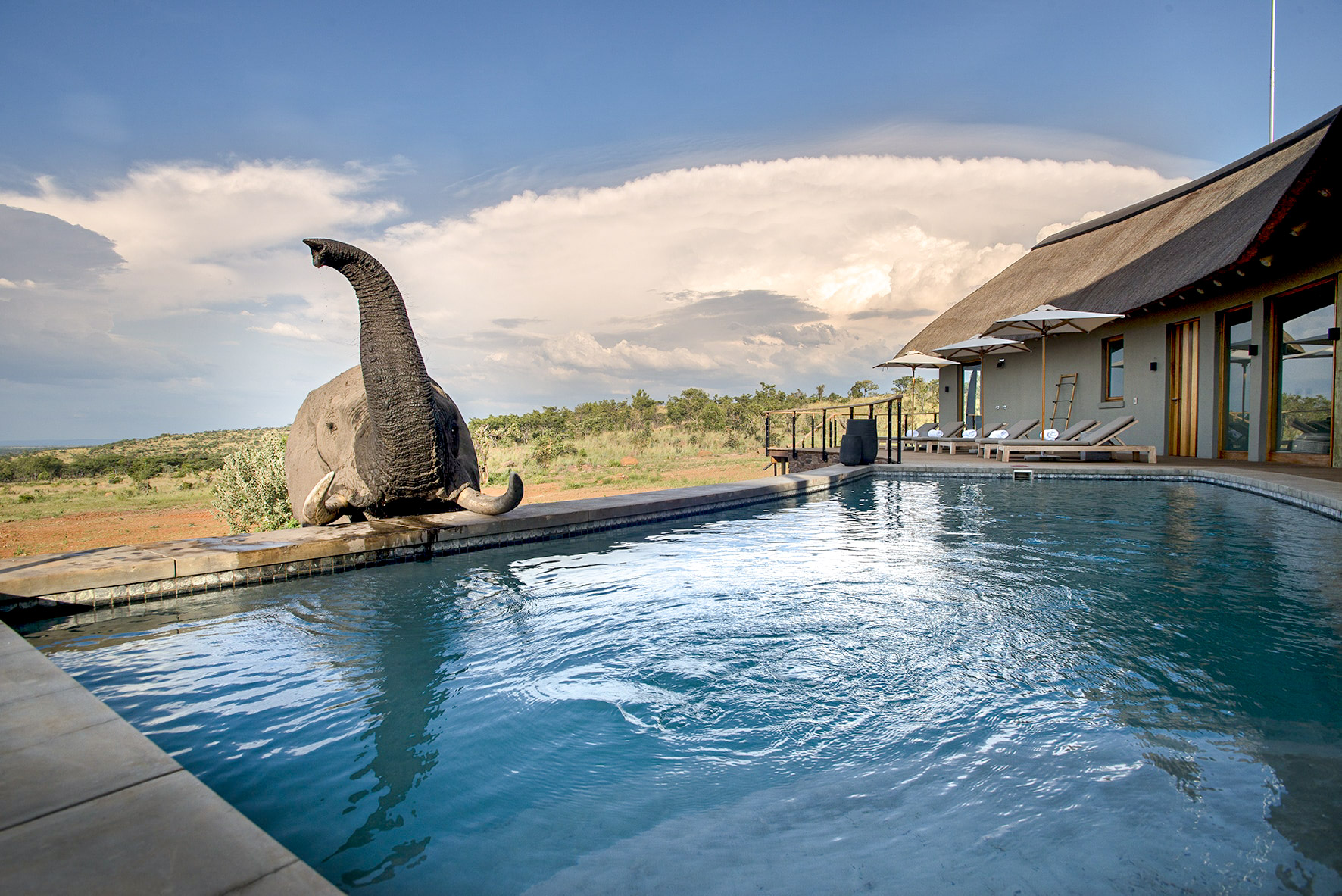 I Sydafrika bor du på en enestående safarilodge, midt i et af landets bedste private safariparker. Her er der rig mulighed for at komme helt tæt på de vilde dyr på savannen – både på game drives og hjemme ved poolen.
